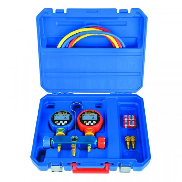 Цифровой манометрический коллектор для работы более чем с 80 различными фреонами, включая R600, R32.